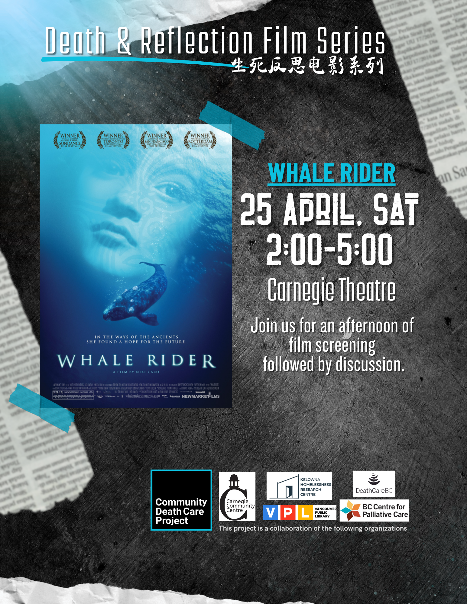 25 April, Saturday Starting at 2:00 pm Theatre @ Carnegie CC Main Floor Drop-ins welcome! Whale Rider On the east coast of New Zealand, the Whangara people believe their presence ...